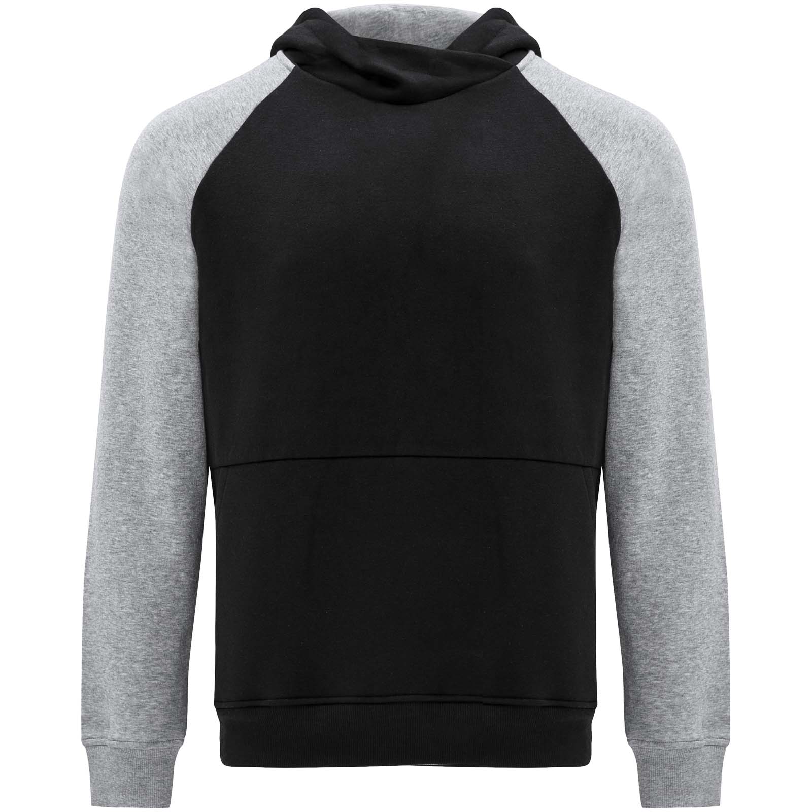 Zweifarbiger Unisex Kapuzenpulli. Kapuze mit gekreuztem Kragen und Metallösen. Innenkapuze, Kordelzug und Raglanärmel in Kontrastfarbe. Kängurutasche. Bündchen und Saum aus elastischem 1×1-Rippstrick. Abnehmbares Etikett.