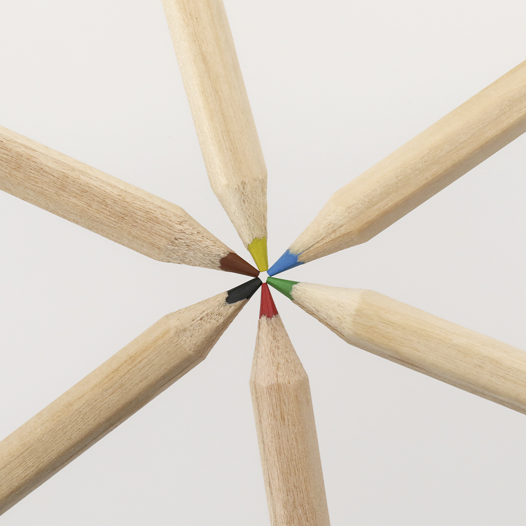 Set aus 6 Holzstiften mit sechseckigem Korpus und Stiften in verschiedenen Farben. Präsentiert in einem weißen Kartonetui mit Klappenverschluss. Spezial für den Digitaldruck.