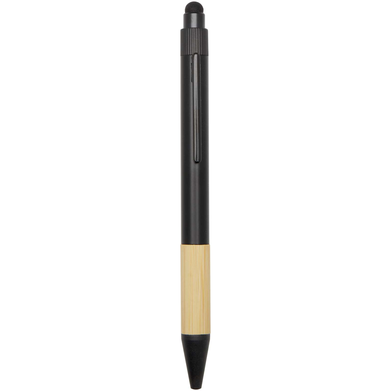 Das Carmen Set enthält ein Hardcover Notizbuch im Format A5, einen Kugelschreiber, eine Wasserflasche und einen Regenschirm. Das Notizbuch ist mit einem elastischen Verschluss und Lesebändchen versehen und besteht aus 80 Blatt liniertem, cremefarbenem 80 g/m² Papier. Die Notizbuchhülle dient zusammen mit dem Halbkreis aus Bambus als Telefonladestation. Der Kugelschreiber besteht aus RCS-zertifiziertem recyceltem Aluminium mit schwarzer Pulverbeschichtung und einem Bambusgriff. Tinte: Schwarz. Schreiblänge: 1000 Meter. Die Wasserflasche mit 450 ml Fassungsvermögen ist aus rostfreiem Stahl gefertigt und hat am Boden einen Bambusaufsatz. Nur von Hand reinigen. Größe der Flasche: 6,6 × 22,2 cm. Der 21″-Schirm besteht aus schwarzem Pongee-Gewebe, der Schirmstock aus schwarzem Metall, die Rippen aus schwarzem Fiberglas und der Griff aus Bambus. Größe des Regenschirms: 28,3 x 5,5 cm. Größe der Geschenkbox: 36 x 30 x 8 cm.