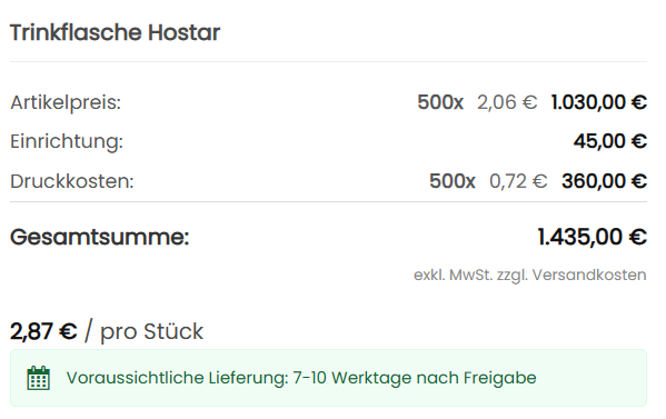 • Druckkosten pro Stück