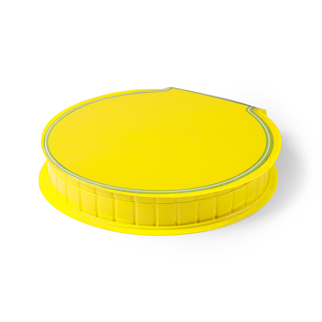 Rundes, widerstandsfähiges Design-Etui in kräftigen Farben mit 14-teiligem Set im Inneren. Enthält Radiergummi, Anspitzer, Wachsmalstifte und zylinderförmige Buntstifte sowie Filzstifte, Aquarellfarben und Pinsel.