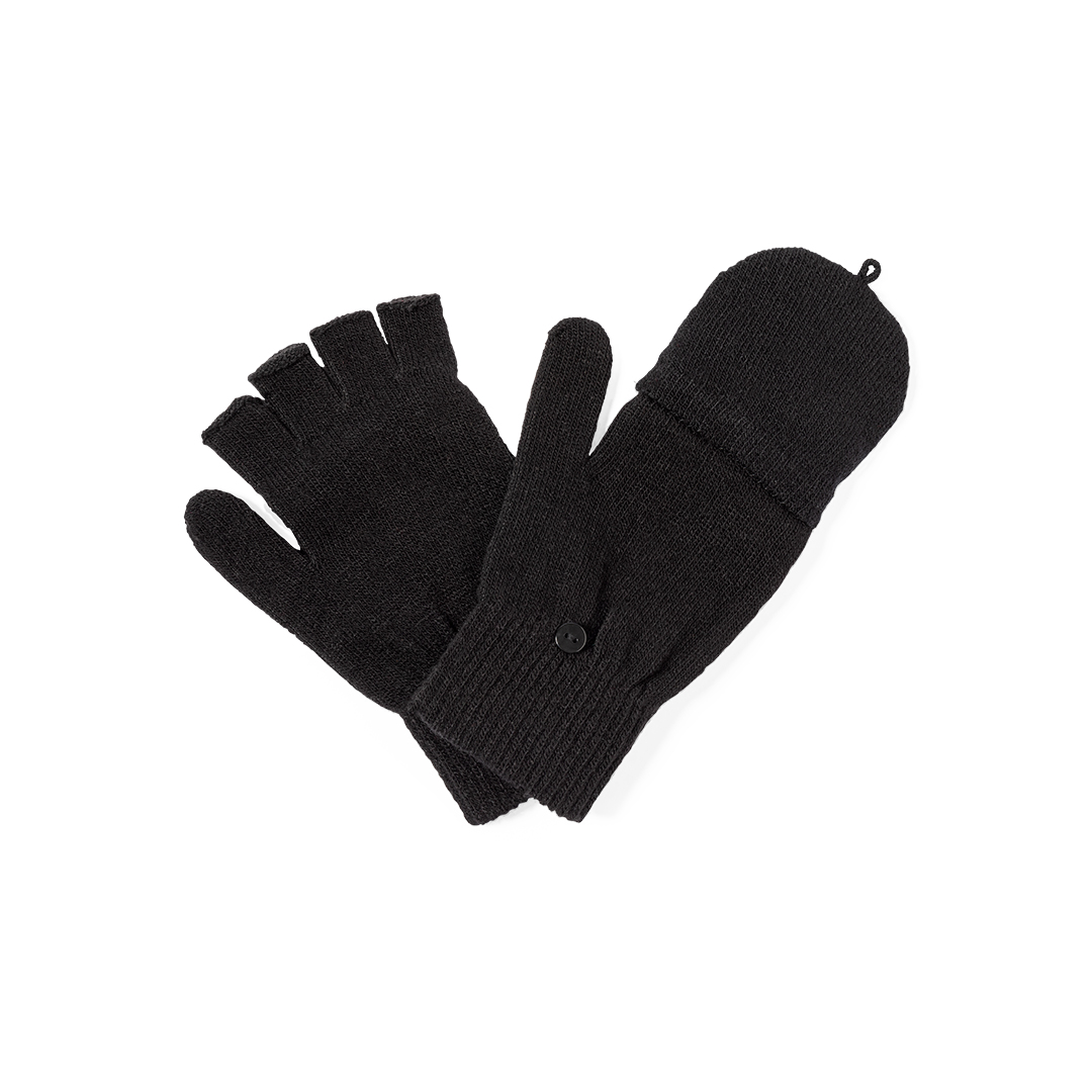 Praktisches Paar Handschuhe aus warmem, weichem Acryl. Mit Klappe, um sie in Fäustlinge zu verwandeln, ideal zum Schutz vor Kälte bei gleichzeitiger guter Beweglichkeit. Eine Erwachsenengröße. Präsentiert in einer individuellen Recycling-Tasche.
