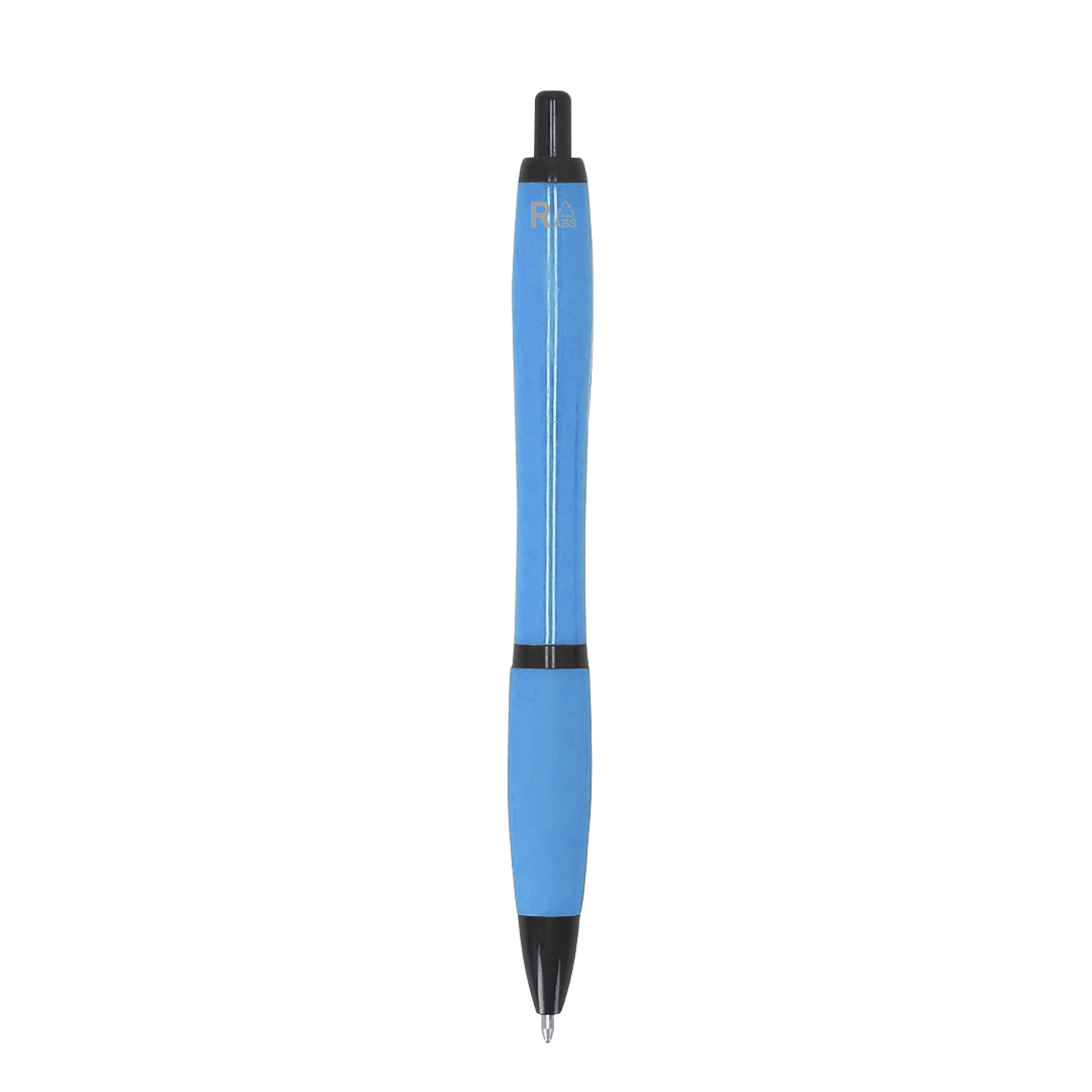 Druckknopf-Mechanismus-Stift im resistenten RABS. Clip, Druckknopf und Spitze schwarz. In blauer Tinte. Beinhaltet das RABS-Abzeichen.