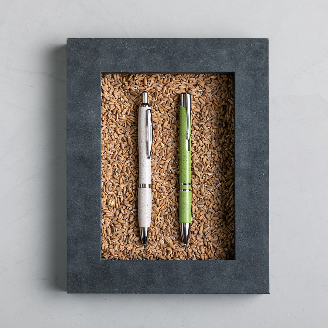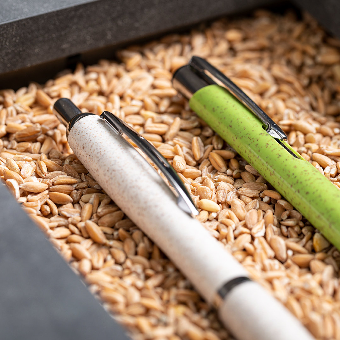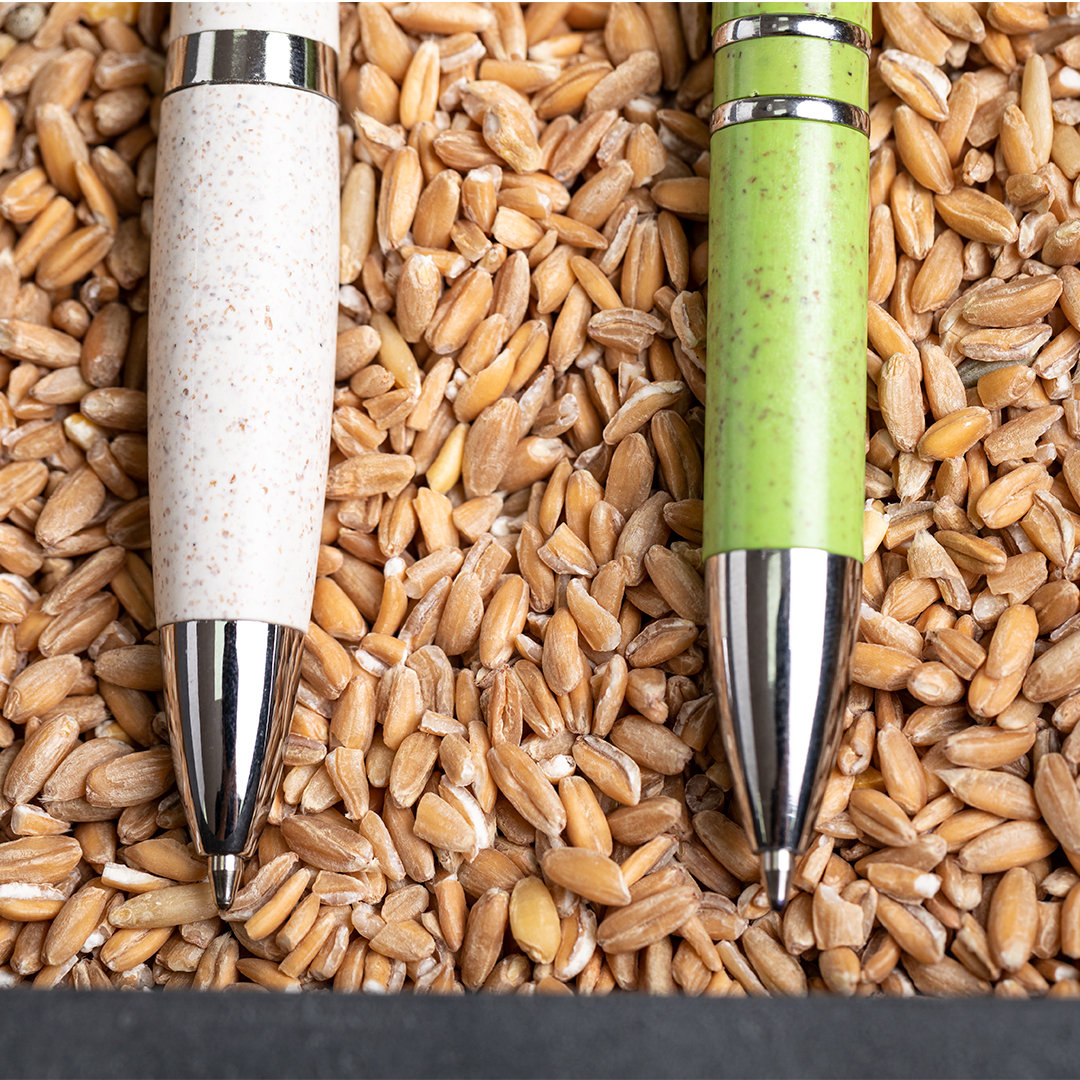 Kugelschreiber der Nature-Linie mit einem Gehäuse aus Weizenstroh, um die Verwendung natürlicher Rohstoffe zu fördern und den Schadstoffausstoß zu reduzieren. Verchromte Details und gestanzter Clip, Push-up-Mechanismus, mit Jumbo-Patrone und blauer Tinte. Erhältlich in einer großen Auswahl an Farben.