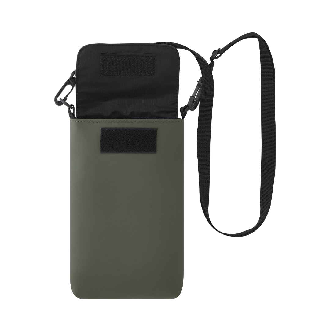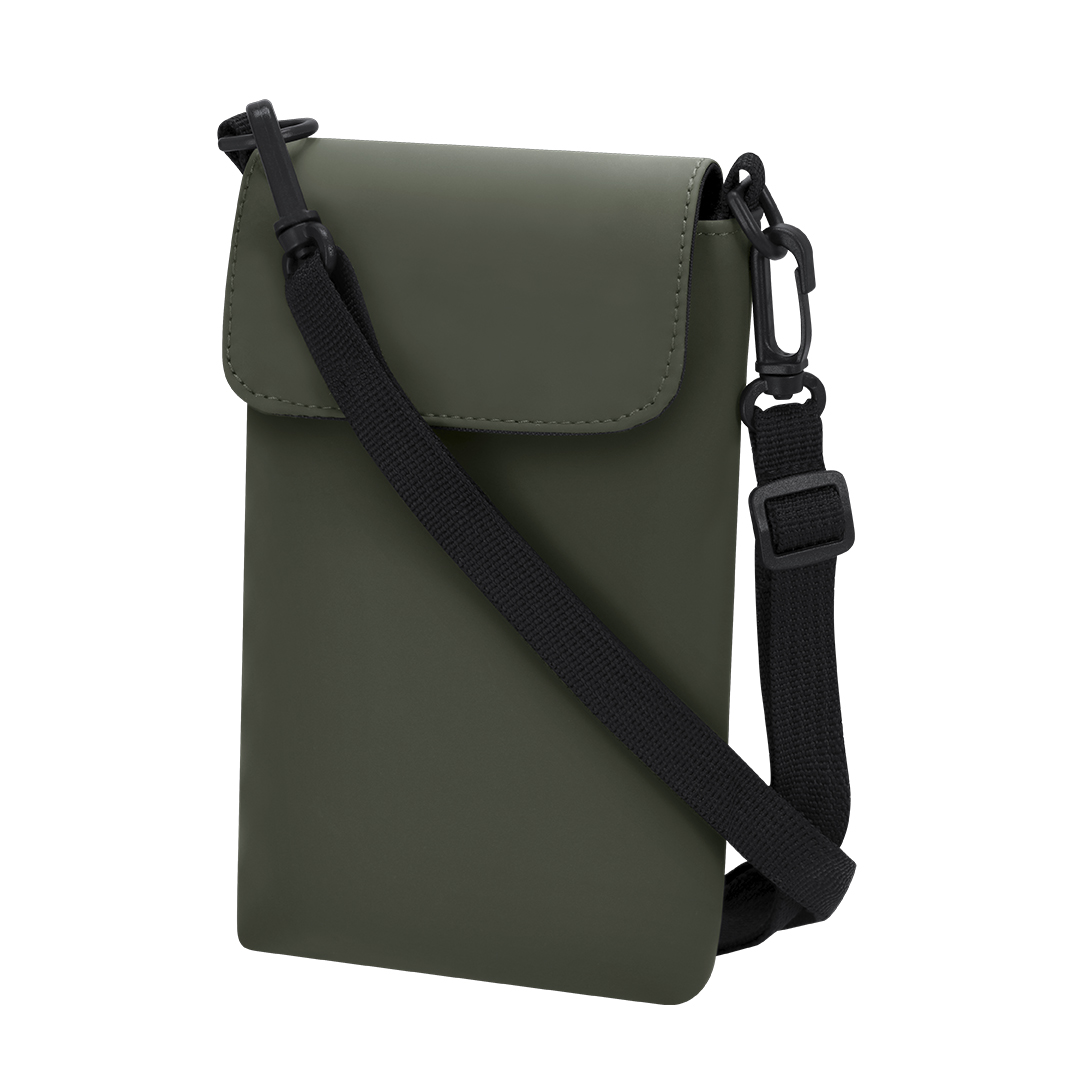Federmäppchen aus weicher PU. Hauptfach mit Klappenverschluss und Klettverschluss. Beinhaltet flachen, verstellbaren Gurt mit doppelt schwenkbarem Karabinerhaken.