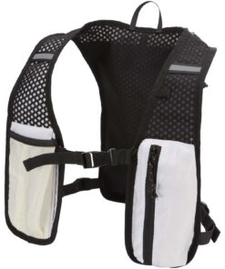 Die Nomad Running-Weste mit Trinksystem besteht aus GRS-zertifiziertem recyceltem Ripstop-Gewebe mit wasserabweisender Beschichtung. Sie verfügt über ein GRS-zertifiziertes RPET-Futter und reflektierende Elemente für bessere Sichtbarkeit. Sie ist konzipiert für Langstreckenläufer, Trailrunner und leichte Outdoor-Aktivitäten. Die Rückseite der Weste ist mit einem atmungsaktiven Mesh-Design ausgestattet, das für einen hohen Tragekomfort sorgt. Sie verfügt über verstellbare Schultergurte und zwei Brusttaschen für Flaschen, kleine Accessoires oder ein Mobiltelefon. Im Inneren befindet sich ein Fach für eine 1,5-Liter-Trinkblase (nicht enthalten). Fassungsvermögen: 5 Liter.
