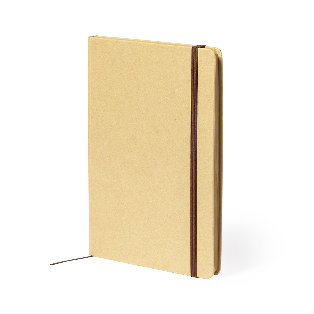 Nature Line A5 Notizblock mit Hardcover aus widerstandsfähigem Recyclingkarton. 100 einfarbige Blätter in Kraft-Finish mit recyceltem Abzeichen, mit elastischem Verschluss und passenden Lesezeichen aus Stoff..