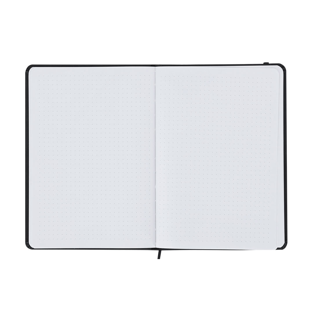 Notizblock aus eleganter PU. Mit Hardcovern und 96 punktierten Designbögen. Enthält Lesezeichenband und Gummiband auf der Abdeckung für sicheren Verschluss.