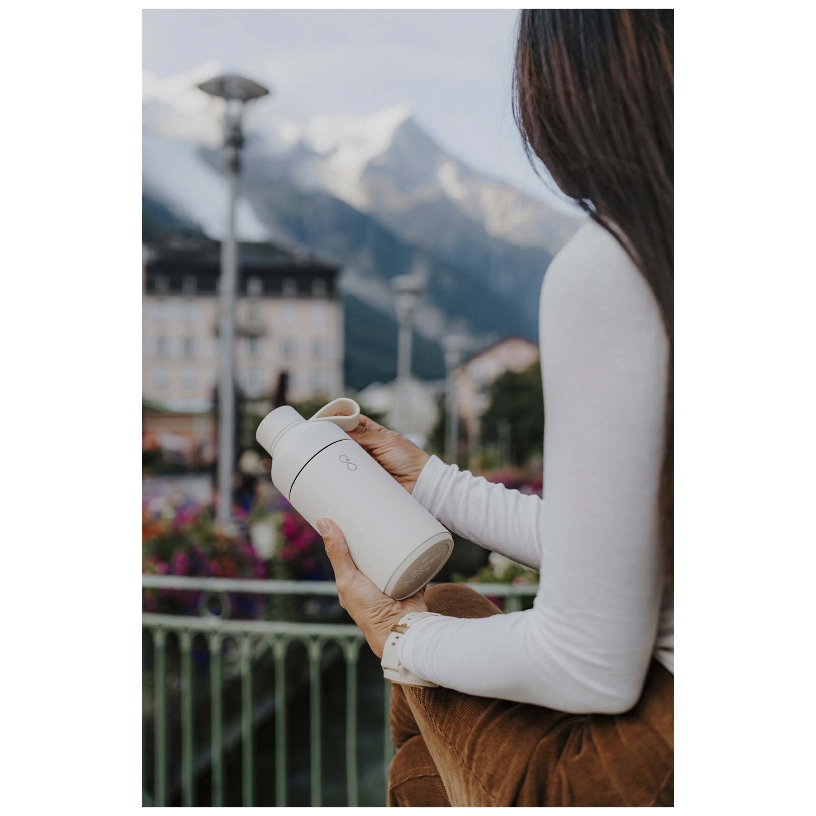 Die 750 ml Ocean Bottle verfügt über eine doppelwandige Vakuumisolierung, die Getränke bis zu 6 Stunden heiß und bis zu 18 Stunden kalt hält. Jede Ocean Bottle ist CO₂-neutral und sammelt 1.000 Plastikflaschen ein, um die Lebensbedingungen in Küstengemeinden zu verbessern. Die Flasche besteht aus recyceltem Edelstahl und recyceltem Ocean Bound Kunststoff und ist mit einem NFC-Smart-Chip ausgestattet, der bei jeder Wiederbefüllung für mehr Kunststoffsammlung sorgt. Die doppelte Öffnung erleichtert das Reinigen und Befüllen der Flasche, und der auslaufsichere Deckel ist mit einer einfachen Trageschlaufe versehen. Die Flasche ist spülmaschinenfest und BPA-frei. Verpackt in einer Geschenkbox aus verantwortungsvoll hergestellten Recyclingkarton.