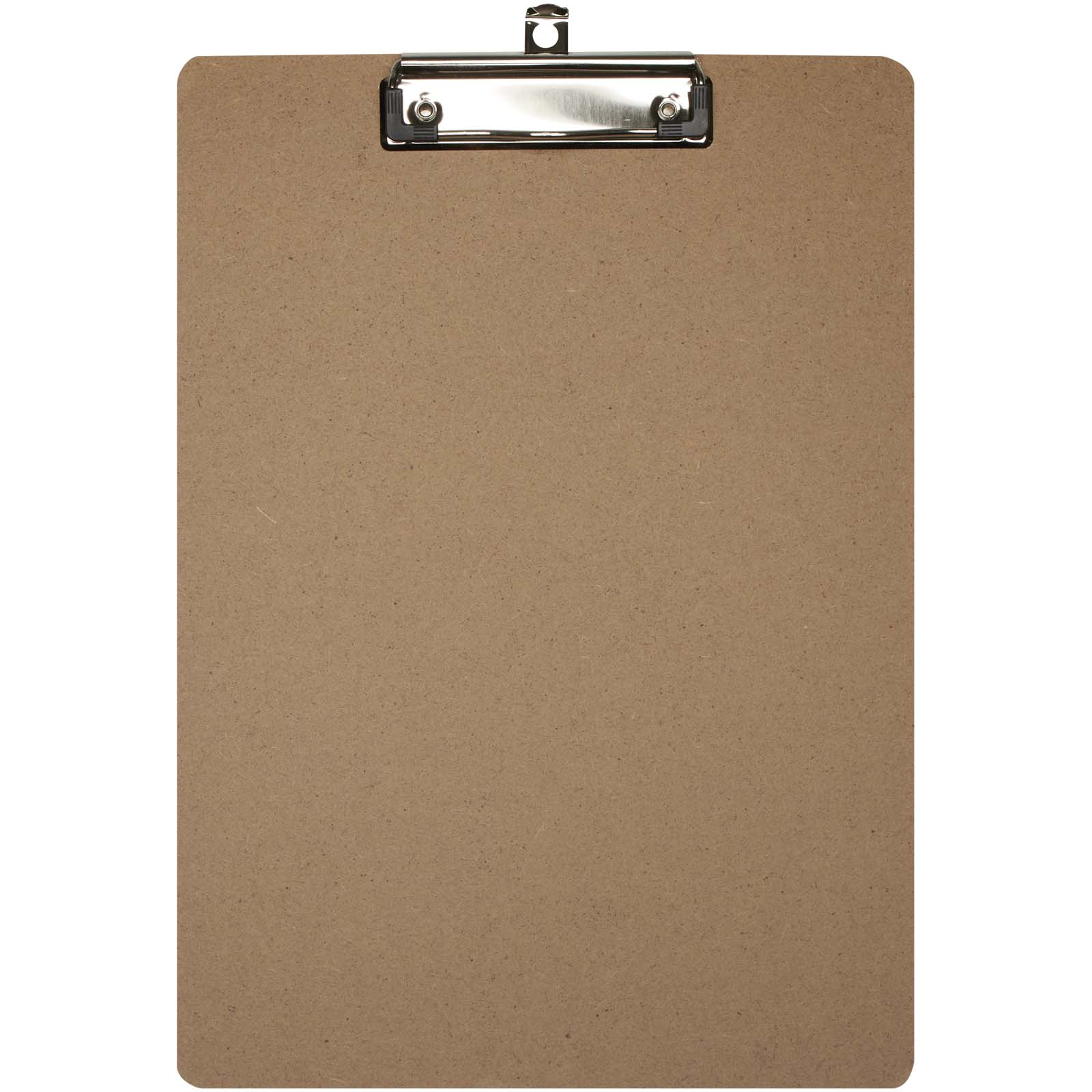 Handliches Klemmbrett aus MDF (mitteldichte Faserplatte). Die Klammer, die das Papier hält, besteht aus Eisen und PP Kunststoff. Größe 32 x 23 x 0,24 cm.