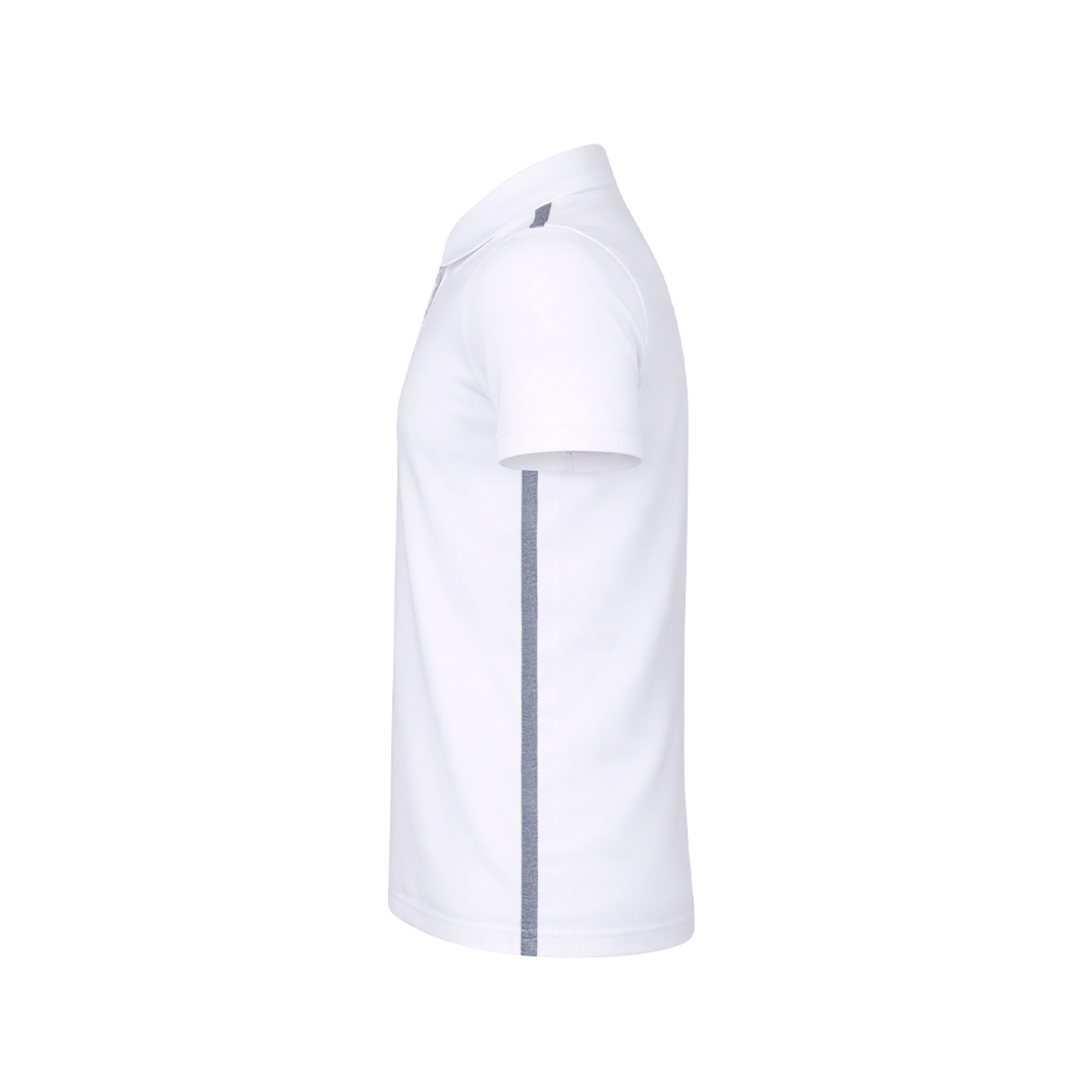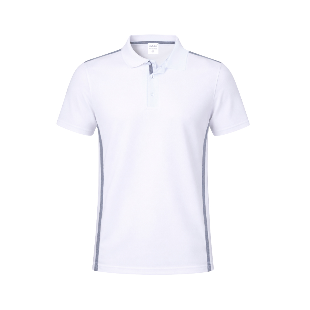 Tecnic Polohemd für Erwachsene aus atmungsaktivem Polyester 180g/m2. In einem eleganten zweifarbigen Design, mit Körper in weißer Farbe und Details in grau. Erhältlich in den Größen S, M, L, XL, XXL. Weiße Farbe speziell für den Sublimationsdruck hergestellt.