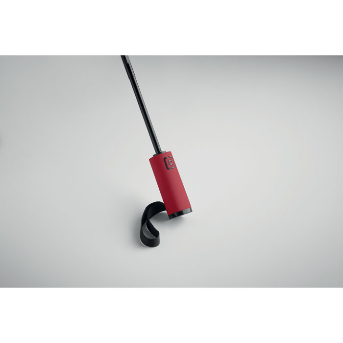 23“ Windproof Regenschirm aus 190T RPET Pongee. 3-fach faltbar. Schwarz beschichtetes Gestell, Stangen aus Fiberglas, gummierter ABS-Griff. Inkl. passende Hülle. Automatische Öffnung und Schließung.