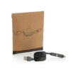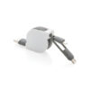 Kompaktes und ausziehbares 3-in-1 Ladekabel mit Type-C USB und zweiseitigem Anschlußstecker für iOS und Android Geräte, die einen Micro-USB Anschluß benötigen. Durch den Aufrollmechanismus kann das 100 cm Kabel, das auch zur Synchronisation Ihrer Daten verwendet werden kann, ohne jeglichen Kabelsalat überall hin mitgenommen werden. ABS-Gehäuse und TPU-Kabel.