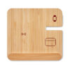 3in1 faltbare Ladestation im Gehäuse aus Bambus mit Smartphone-Halter. Inkl. kabelloses Dual-Coil-Ladegerät (15 W), Smartwatch-Ladegerät (nur Apple®) und TWS-Ladegerät.