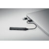 4 Port USB-Hub aus recyceltem Aluminium. 3 USB-A + 1 Typ-C. Eingang: 2-in-1 Typ-C & Typ-A. Kabellänge: 19 cm.
