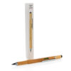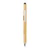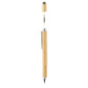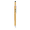 Multifunktions-Bambusstift mit Lineal (7 cm), Wasserwaage, Schraubendreher, Stylus-Spitze und Kugelschreiber mit 400m blauschreibender Tinte. Aus Bambusmaterial mit Aluminiumclip.