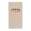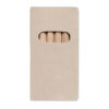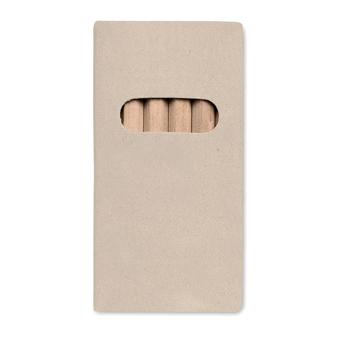 6 Buntstifte in einer Schachtel aus recyceltem Papier.