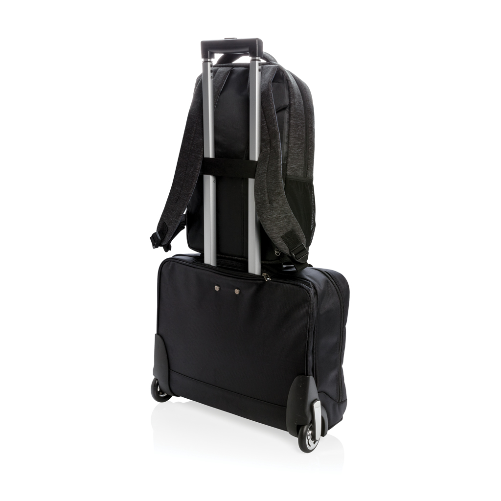 Sportlich urbanes Design macht diesen 900D Laptop-Rucksack zu einem Begleiter für Schule, Büro und Alltag. Mit gepolstertem Laptopfach, einem großen Hauptfach für Bücher oder Kleidung und einer weiteren Vortasche mit Reißverschluss, sowie einem Trolley-Halte-Riemen. Geeignet für Laptops bis zu 15.6”. PVC-frei.