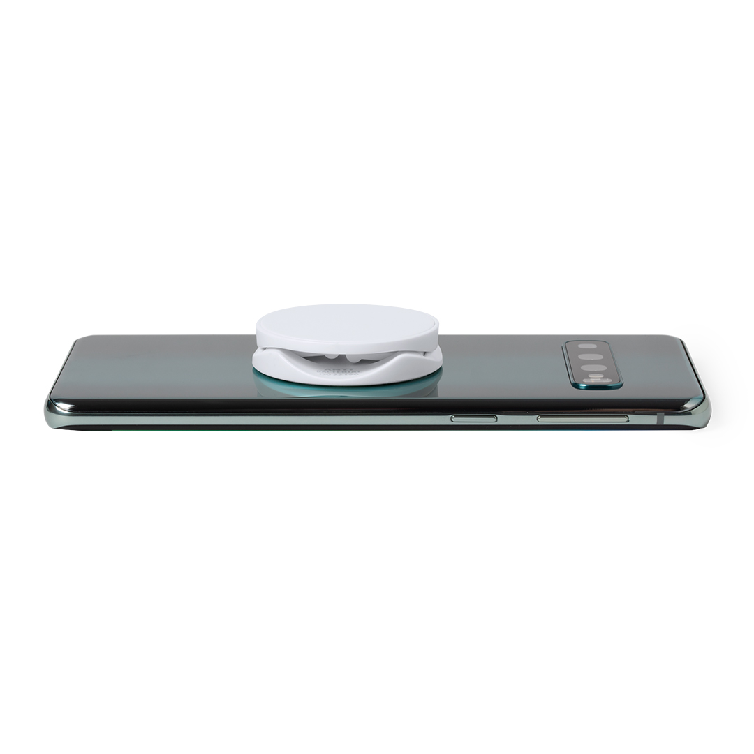 Antibakterieller, klappbarer Halter für Smartphones in elegantem, weißem Farbdesign. Speziell für den Tampondruck entwickelt, mit 3M-Klebeband, extra starker Fixierung und rückstandsfrei vom Gerät ablösbar.Produkte mit antibakterieller Behandlung sind in der Lage, die bakterielle Belastung der Materialoberflächen dank der Zugabe von permanenten statischen mikrobiellen Mitteln drastisch zu reduzieren, mit hoher Wirksamkeit bei der Hemmung und Verhinderung bakterieller Verunreinigungen.Artikel nach der Norm ISO 22196, die die antibakterielle Aktivität in Kunststoffen und auf nicht porösen Oberflächen bestimmt. Dies erlaubt es uns, die Wirksamkeit der Bakterienhemmung, die die Zusatzstoffe auf den behandelten Artikeln haben, anhand einer quantitativen Bewertung zu bestimmen.