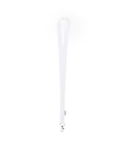 Antibakterielles Schlüsselband aus weißem Polyester mit Metallkarabiner. Produkte mit antibakteriellen Behandlungen sind in der Lage, die auf den Materialoberflächen vorhandenen bakteriellen Belastungen drastisch zu reduzieren, dank der Einbindung statischer, permanenter mikrobieller Wirkstoffe, mit hoher Wirksamkeit zur Hemmung und Verhinderung bakterieller Kontamination.Artikel nach der Norm ISO 20743, der die antibakterielle Aktivität in Textilprodukten bestimmt, was erlaubt, die Wirksamkeit der mikrobiellen Hemmung, die die Zusatzstoffe auf den behandelten Objekten haben, durch eine quantitative Bewertung zu kennzeichnen. Antibakterielle Kennzeichnung auf dem Etikett.