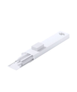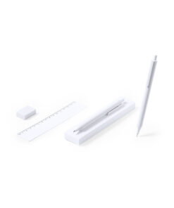 Antibakterielles Set aus widerstandsfähigem weißem PP-Material. Inklusive Kugelschreiber, Druckbleistift (inklusive 0,5 mm Mine), 15 cm Lineal und Radiergummi.Druckknopfmechanik Kugelschreiber mit blauer Tinte.Die Produkte mit antibakteriellen Behandlungen sind in der Lage, die bakteriellen Belastungen auf den Oberflächen der Materialien drastisch zu reduzieren, dank der Einarbeitung von statischen permanenten mikrobiellen Wirkstoffen, mit hoher Wirksamkeit zur Hemmung und Verhinderung von bakterieller Kontamination.Artikel nach der Norm ISO 22196, der die antibakterielle Aktivität in Kunststoffen und nicht porösen Oberflächen bestimmt, was es ermöglicht, die Wirksamkeit der mikrobiellen Hemmung, die die Additive auf den behandelten Objekten haben, durch eine quantitative Bewertung zu kennen.