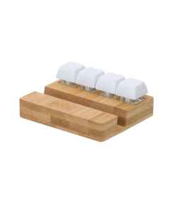 Originaler Anti-Stress-Halter aus Bambus. Mit vier Tasten, die eine mechanische Tastatur imitieren und so oft wie nötig unabhängig voneinander gedrückt werden können, um Spannungen abzubauen. Inklusive eines praktischen Halters für mobile Geräte, der Funktionalität und Stressabbau in einem eleganten Design kombiniert.Materialien wie Bambus fördern die Verwendung natürlicher Rohstoffe und reduzieren so die Schadstoffemissionen. Es stammt von einer sehr widerstandsfähigen und vielseitigen Pflanze mit schnellem Wachstum und Regeneration, was es zu einer hervorragenden Alternative zur Verwendung von traditionellem Holz macht.