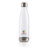 Erhöhen Sie Ihre tägliche Wasseraufnahme mit dieser auslaufsicheren Wasserflasche mit Stainless-Steel-Deckel und -Boden und transparentem Gehäuse. In einer Form, die in die meisten Getränkehalter passt. Inhalt: 500ml. BPA frei. Nur Handwäsche.