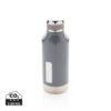 Diese auslaufsichere Vakuumflasche mit abschraubbarem Deckel hat eine spezielle Platte für Ihr Logo. Innen 304 Stainless Stell und außen 201 Stainless Steel. Hält Ihre Getränke bis zu 5h warm und bis zu 15h kalt. Inhalt: 500ml. Nur Handwäsche.