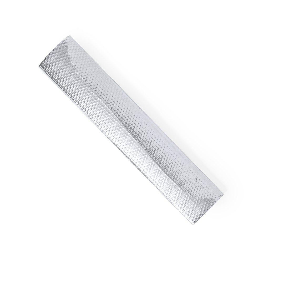 Autosonnenschutz aus Aluminium mit beidseitiger Blase und den Maßen 130×70 cm. Silberne Metallic-Oberfläche, mit originellem Design ohne Paspel. Präsentiert in einer Tasche, ungefaltet um den Druck zu erleichtern.