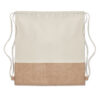 Beutel mit Kordelzug und Besatz aus Jute. Lange Tragegriffe. 160 g/m².
