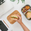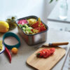 Aufgrund des Erfolgs unserer ersten Sandwichbox haben wir diese tiefere Version eingeführt, damit Sie auch größere Dinge wie Obst und Joghurt mitnehmen können. Dies ist eine robuste, 100% plastikfreie Designlösung für die Zubereitung und den Transport Ihrer Sandwiches, Wurstwaren oder sogar Ihrer Käseauswahl! Die Edelstahl-Sandwichbox gehört zu den Produkten, die sich vom ersten Tag an vertraut und vertrauenswürdig anfühlen und die so gebaut sind, dass sie lange halten. Verwenden Sie den von Natur aus antibakteriellen Bambusdeckel als Schneidebrett, um Ihre Sandwiches zuzubereiten, oder als Servierbrett, um die Zutaten für eine köstliche Mahlzeit später am Tag zusammenzustellen. Die Edelstahlbox schützt den Inhalt, und das Silikonband sorgt für zusätzliche Sicherheit. Das Innenfach hilft Ihnen, verschiedene Lebensmittel zu trennen, und ist mikrowellengeeignet. Nur Handwäsche