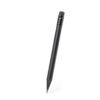 Bleistift aus Naturholz mit mattschwarzer Oberfläche, mit schwarzer Mine, angespitzter Spitze und passendem Radiergummi oben drauf.