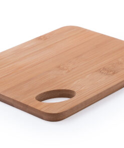 Schneidebrett aus Bambusholz in glatter Ausführung. Mit Stanzung für einfache Handhabung.