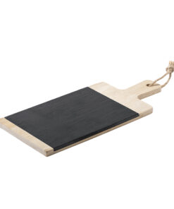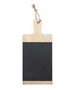 Platte aus einer Kombination von Bambus- und Schiefermaterialien, mit einer glatten und widerstandsfähigen polierten Oberfläche. Ideal zum Schneiden und Präsentieren. Mit Griff zur einfachen Handhabung und Aufhängekordel. Abnehmbare Schiefertafel für einfache Reinigung. Präsentiert in einer attraktiven, individuellen Öko-Design-Box.