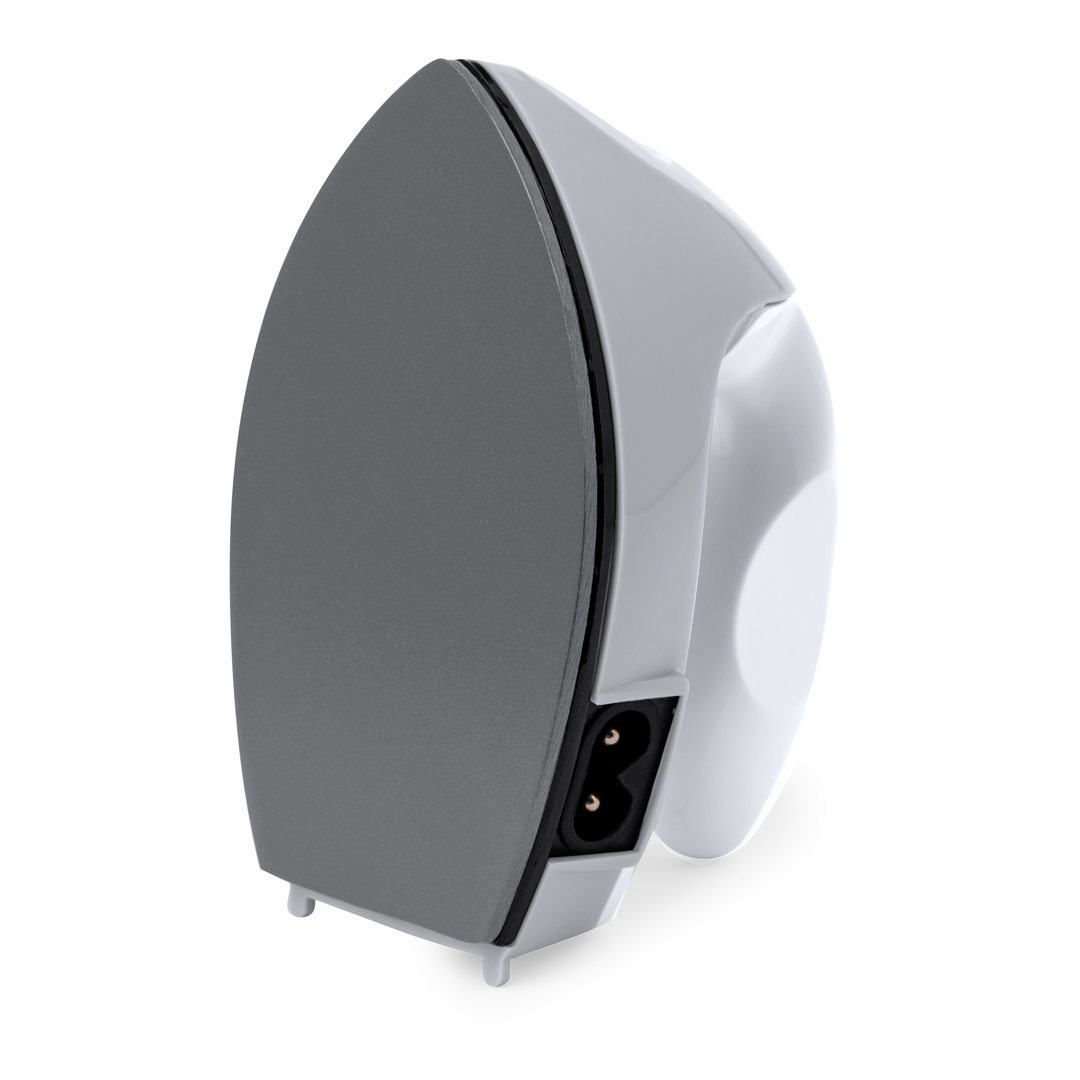 Fantastisches Reisebügeleisen zum Entfernen von Falten durch trockene Hitze. Ergonomisch gestaltet, leicht und einfach zu transportieren, mit EU-Stecker. Präsentiert in einer Kraftpapier-Designbox mit Anweisungen in Englisch und Spanisch.