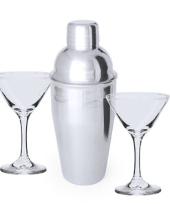 Elegantes Cocktail-Set. Inklusive einem Edelstahl-Cocktail-Shaker mit 550ml Fassungsvermögen, um die besten Cocktail-Mischungen zuzubereiten. Darüber hinaus enthält es 2 Glaser mit je 150 ml, mit einem eleganten dreieckigen Design, für eine exquisite Präsentation. Präsentiert in einer schwarzen Box.