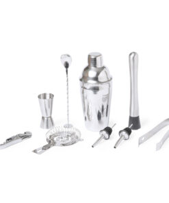 Elegantes Cocktailset aus Edelstahl. Komplettes Set, das moderne und traditionelle Konzepte kombiniert. Es enthält alle wesentlichen Utensilien für die Zubereitung der besten Cocktails. Mit originellem Bambusboden zum Aufbewahren und Ausstellen aller Utensilien. Präsentiert in einer eleganten Kraftbox.Enthaltenes Zubehör:- 1 Cocktail Shaker- 1 Mörser mit Stößel- 1 Messbecher mit 15/30 ml- 1 Zange für Eis- 1 Filter- 1 Korkenzieher/Öffner- 1 Mixlöffel- 2 Dosierkappen
