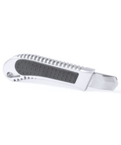 Teppichmesser aus einer Edelstahl/Aluminium-Kombination mit breiter Klinge und ergonomischem Griff. Mit abnehmbarem Deckel für die Einstellung der Klinge.
