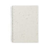 DIN A5 Notizbuch mit Cover aus Samenpapier. 100 Blatt (200 Seiten) liniertes Recyclingpapier. Spiralbindung.