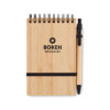 DIN A6 Notizblock mit einem Cover aus Bambus und 70 Blatt liniertem Recyclingpapier. Inklusive passendem Kugelschreiber aus recyceltem Papier mit PLA-Spitze und Clip. Mit diesem praktischen Büroartikel können Sie alles Wichtige während Ihrer Meetings notieren. Der Bambuseinband verleiht dem Block einen schönen natürlichen Touch. Sowohl der Kugelschreiber als auch das Papier sind aus Recycling-Papier hergestellt, was dieses Produkt zu einer nachhaltigen Wahl macht. Der Stift hat blaue Tinte. Da Bambus ein natürliches Material ist, können Farbton und Maße pro Artikel variieren. Dies kann zu Abweichungen im Ergebnis der Veredlung führen. FSC®-certified | FSC MIX, P7.7, FSC-C213206