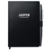 DIN A6 Notizbuch mit Hard Cover aus PU und 72 Blatt (144 Seiten) liniertem Papier. Elastisches Verschlussband und Lesebändchen. Mit passendem Druckkugelschreiber aus Metall. Blaue Tinte. FSC MIX CREDIT | P7.1 | FSC-C213206
