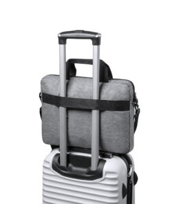 Eleganter Dokumentenhalter mit Nature Line in widerstandsfähigem 600D RPET Melange-Effekt, hergestellt aus recyceltem Kunststoff, um die Wiederverwendung von Kunststoffabfällen zu fördern und zur Nachhaltigkeit des Planeten beizutragen. Details in Schwarz, mit gepolsterten Innenfächern für Computer bis zu 15 Zoll und Tablet bis zu 10 Zoll. Trolleybefestigung auf der Rückseite, Außentasche mit Reißverschluss, komfortable verstärkte Griffe, verstellbarer Schultergurt mit Karabinerverschluss und passendem Schulterpolster. RPET-Plakette auf dem Außenetikett.