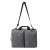 Dokumentenrucksack aus strapazierfähigem 600D RPET. Es verfügt über ein urbanes Design mit einer Mitteltasche mit Reißverschluss und Doppelschieber. Mit Innenpolsterung für Laptops bis 15 Zoll, einer zusätzlichen Tasche mit doppeltem Reißverschluss und einer Vordertasche. Die Schultergurte und der Rücken sind gepolstert und für mehr Komfort verstellbar. Es kann auf drei verschiedene Arten getragen werden: als Rucksack, mit gepolsterten Schultergurten; als Dokumentenhalter, mit gepolstertem Tragegriff; und als Umhängetasche mit langem, verstellbarem Schultergurt. Es ist in drei stylischen Farben erhältlich und wird edel in einer individuellen Recycled-Tasche präsentiert.