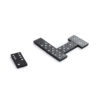 Klassisches Holz-Domino mit 28 Teilen in Schwarz mit weißen Details. Präsentiert in einer Holzkiste.