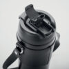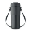 Doppelwandiger Trinkbecker aus pulverbeschichtetem Edelstahl. 2in1 PP-Deckel mit Trinköffnung und Trinkhalm. PU-Trageriemen. Auslaufsicher. Füllmenge: 700 ml.