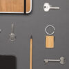 Eckiger Schlüsselring aus RCS rec. Zinklegierung mit Bambus
