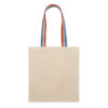 Einkaufstasche aus Baumwolle 180 g/m². Tragegriffe in Regenbogenfarben. Max. Traglast: 2,5 kg.