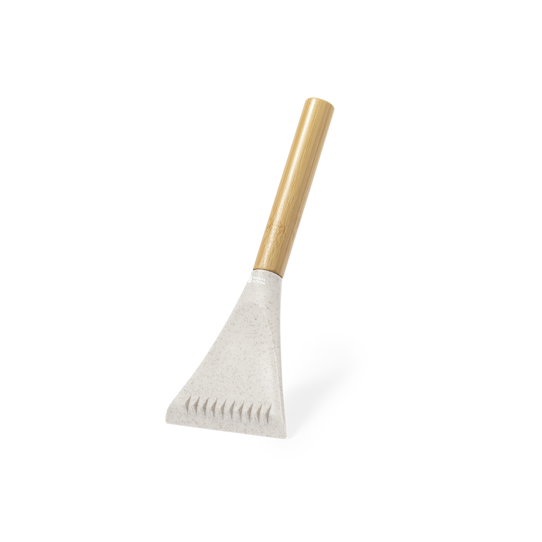 Praktischer Eiskratzer aus Bambus und Weizenstroh. Schaufelförmig, mit Bambusgriff und Kratzfläche aus Bambus und Weizenstroh, mit integrierten Abstreifern und Säge. Logo auf dem Griff und einzeln in einer Kraftpapiertüte verpackt.Materialien wie Bambus fördern die Verwendung von natürlichen Rohstoffen und reduzieren den Schadstoffausstoß. Es handelt sich um eine sehr widerstandsfähige und vielseitige Pflanze, die schnell wächst und sich regeneriert, was sie zu einer hervorragenden Alternative zu herkömmlichem Holz macht.Weizenstroh fördert die Verwendung natürlicher Rohstoffe und verringert so die Schadstoffemissionen.