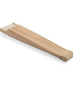 Fächer aus unserer Naturlinie mit Holzrippen und Baumwollstoff. Präsentiert in einer individuellen, ökologischen Design-Box.