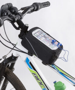 Vielseitig verwendbare Fahrradtasche aus robustem 600D Polyester mit Polsterung und PVC-Fenster mit Touch-Funktion. Mit Kopfhörerausgang und Reißverschluss sowie gefüttertem Interieur mit Smartphone-Fach. Dreifacher Klettverschluss für die Anbringung an Lenker und Stange.